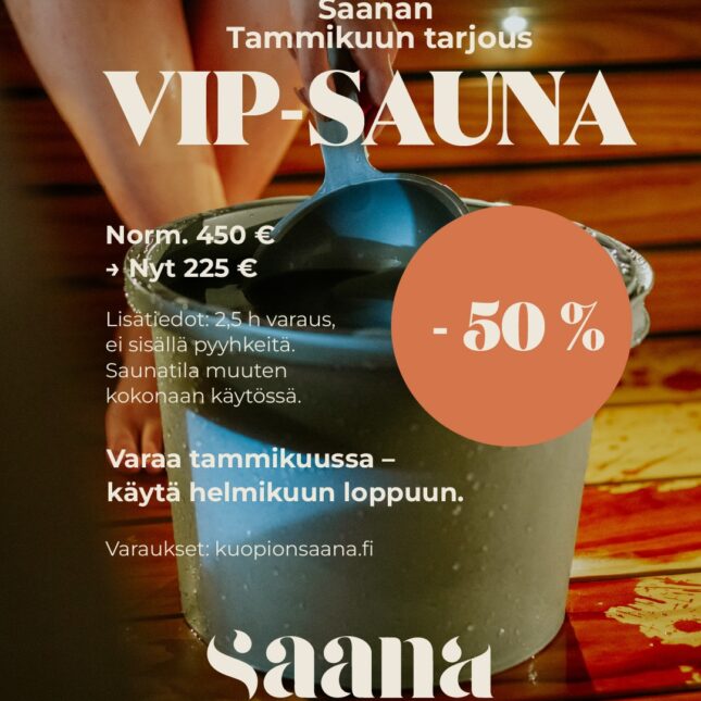 Saunakabinetin yhteydessä on 12 -hengen sauna. VIP- Saanan asiakkailla on myös täysi käyttöoikeus yleisen puolen Sauna & Spa -palveluihin kuten elämyssuihkuun, savusaunaan ja ulkouima-altaitaisiin.. Saunakokemuksen kruunaa pehmeä pyyhe, joka kuuluu pakettiin.