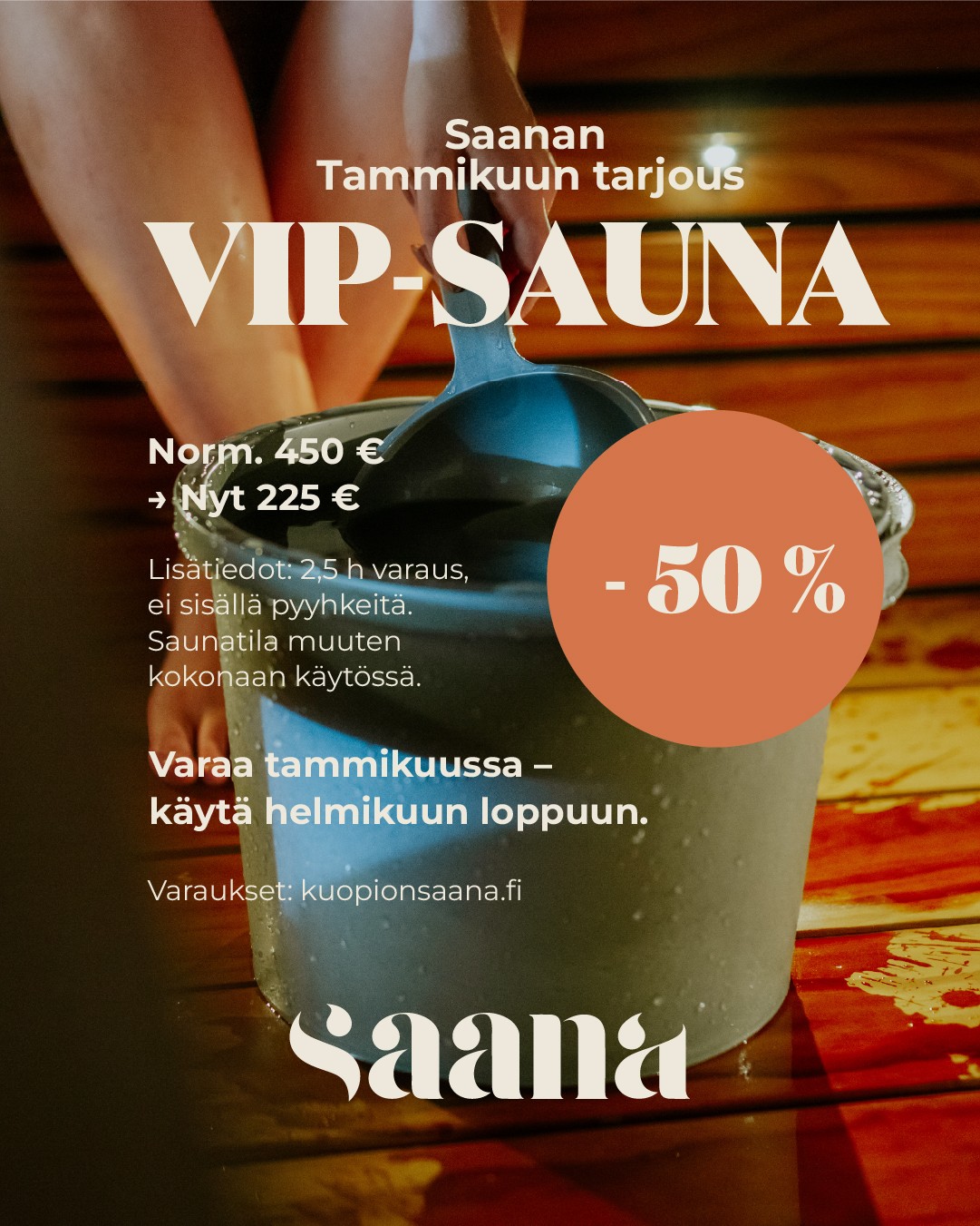 TAMMIKUUN TARJOUS 225€. (ei sisällä pyyhkeitä)
